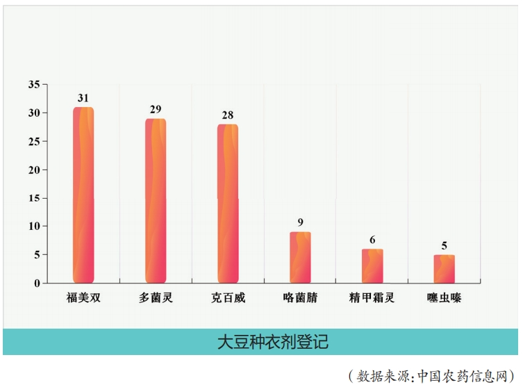 今年我國將再擴(kuò)種大豆1000萬畝以上,確保大豆油料面積穩(wěn)定在3.5億畝以上。大豆擴(kuò)種,最先帶動的一定是豆田農(nóng)藥的銷售增長,未來相當(dāng)長的一個時期內(nèi),我國大豆農(nóng)藥市場前景將持續(xù)看好。作為病蟲防治第一關(guān)的種子處理劑的使用量也將穩(wěn)步拉升,市場潛力巨大。大豆種衣劑主要以防治孢囊線蟲和根腐病為主,目前防治大豆孢囊線蟲種衣劑主要還是以克百威復(fù)配制劑為主。克百威成分主要用于防治地下害蟲(蠐螬、螻蛄、金針蟲、地老虎等)、蚜蟲、薊馬和孢囊線蟲。中國農(nóng)藥信息網(wǎng)農(nóng)藥登記數(shù)據(jù)顯示,截至2023年9月20日,在我國有效登記的大豆種子處理劑產(chǎn)品共有45個,其中含有克百威成分的有28個,占比達(dá)到62%,一旦全面停用對大豆種衣劑市場影響較大。吉林省吉享農(nóng)業(yè)科技有限公司銷售經(jīng)理費千武表示,精甲·咯菌腈是這幾年農(nóng)藥廠商種衣劑登記的熱點成分所在,硫雙威、氟吡菌酰胺也是未來重點關(guān)注的化合物。以咯菌腈混精甲霜靈或噻蟲嗪成分的綠色大豆種衣劑越來越多地被應(yīng)用到生產(chǎn)上,精甲·咯菌腈的推廣空間廣闊。精甲·咯菌腈是由精甲霜靈與咯菌腈按一定比例混配的一種廣譜低毒復(fù)合殺菌劑,防治由高等真菌引起的苗期病害及防治由低等真菌引起的土傳和種傳病害,專用于種子處理,使用方便、安全,不污染環(huán)境,既可供種子公司做種子包衣劑,也可供農(nóng)戶直接包衣,對大豆的根腐病、立枯病、猝倒病有著很好的防治效果,當(dāng)前在黑龍江大豆區(qū)有著很好的推廣應(yīng)用前景。目前先正達(dá)、拜耳、安徽豐樂、吉林八達(dá)、遼寧壯苗、黑龍江護(hù)苗科技、深圳千色龍等國內(nèi)外種衣劑企業(yè)在國內(nèi)大豆主產(chǎn)區(qū)都有著相當(dāng)大的市場占比。先正達(dá)的亮盾 ®(25 克 / 升咯菌腈 +37.5 克 / 升精甲霜靈)、利農(nóng) ®(氟唑環(huán)菌胺 4.85%+ 咯菌腈 2.55%+ 精甲霜靈 3.6%)、邁舒平 ®(22.2% 噻蟲嗪 +1.1% 咯菌精 +1.7%精甲霜靈),在黑龍江市場都是明星大單品。綜上,淘汰高毒農(nóng)藥是勢在必行的,它們退市后的空白市場,新機(jī)遇無限。企業(yè)要想搶抓機(jī)遇,就需要提前做好替代產(chǎn)品的布局,要積極開展低毒高效產(chǎn)品的研發(fā)生產(chǎn),提高技術(shù)服務(wù)能力。